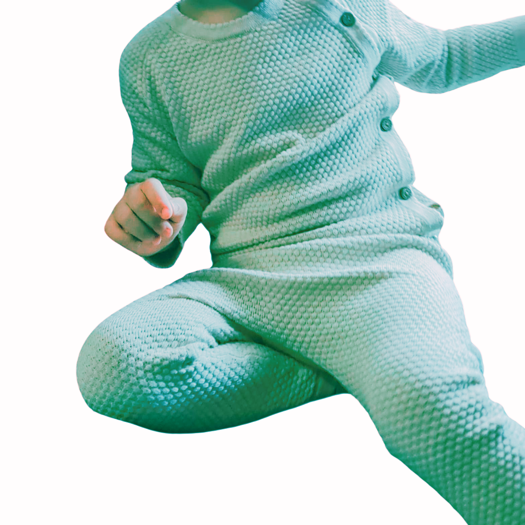 Fabricat cu grijă, din bumbac premium, acest material delicat și moale se simte ca o îmbrățișare blândă pentru pielea sensibilă a copilașilor. Setul este disponibil în trei nuanțe subtile: Crem, Gri și Roz fiind special creat pentru copilașii cu vârste cuprinse între 0 și 48 de luni