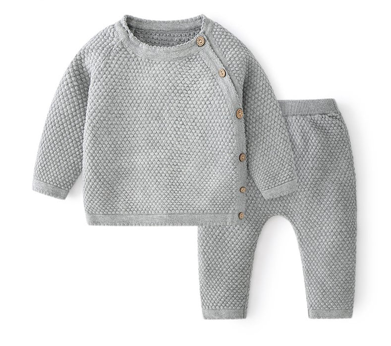Înconjurați micuții cu tandrețe oferindu-le Setul casual copii bumbac tricotat premium , disponibil în trei nuanțe subtile:
